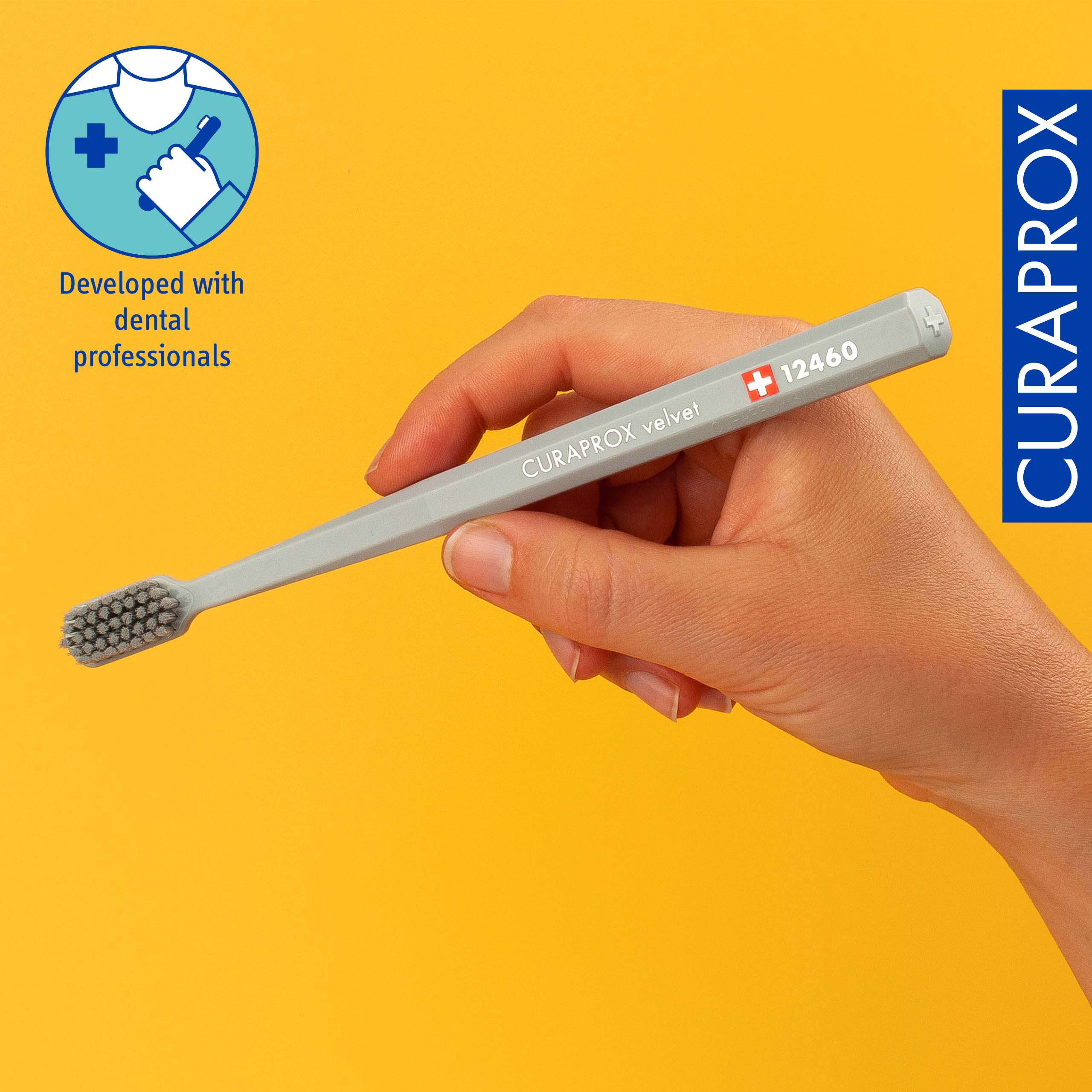 Are there really 12,460 filaments?! To try the CS 12460 velvet is to believe it. It’s sensationally gentle. This is mindful oral health. Love your gums. Take some time out for you and your oral health. Quietly. Twice a day. The CS 12460 velvet is sensationally gentle on tooth enamel and gums. Brushing your teeth becomes a nourishing daily ritual. 12,460 special Curen® filaments guarantee the smoothest Curaprox experience of all. For strong beautiful teeth and healthy gums… without enamel damage, without receding gums. This is your authentic smile. This is the real you.